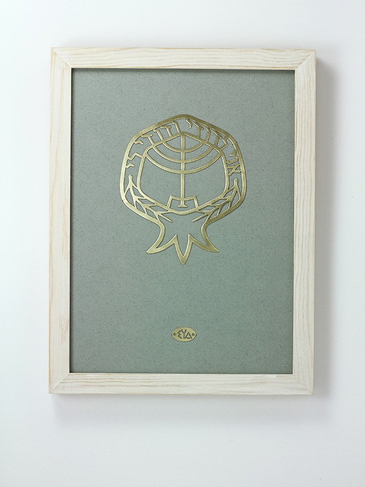 Menorah framed designed by the israeli artist Shraga Landesman.