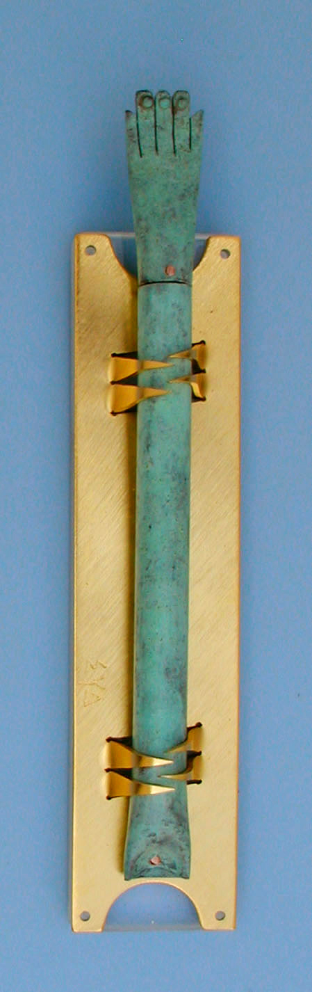 Catalogue Number: 71 Categories: , Tags: , , , , , , Materials: Brass gold plated,copper, flexiglassSize: 15x3 cm, scroll 8 cm