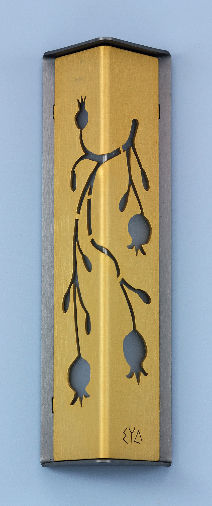 This anodized aluminum Mezuzah case features an elegant contemporary design