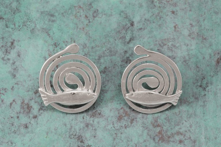 Silver fish spiral earrings